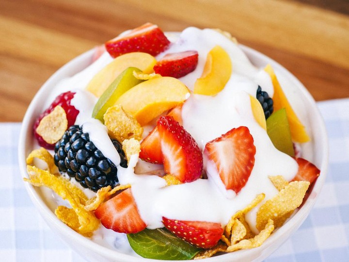 Salad buah sering dianggap sebagai pilihan makanan yang sehat karena mengandung banyak vitamin, mineral, dan serat dari buah-buahan.